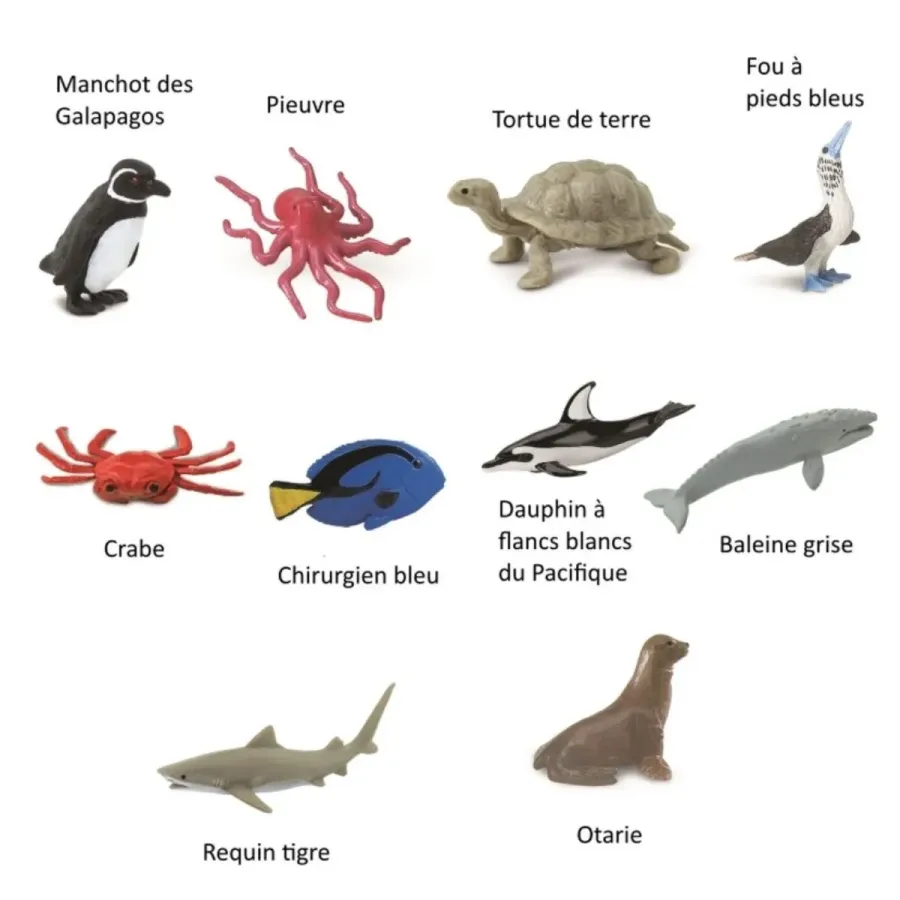 Un tube de figurines Safari Ltd pour découvrir les animaux emblématiques de l’océan Pacifique.