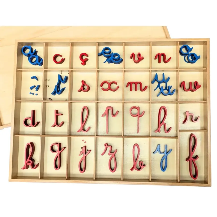 Alphabet mobile Montessori cursif en bois