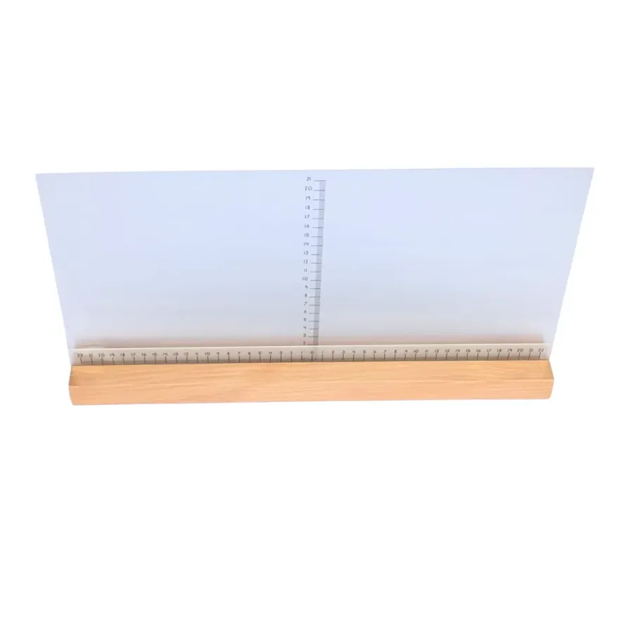 Le cadre en plexiglas transparent, associé à une graduation, permet à l’enfant de visualiser facilement les surfaces. Les formes peuvent être positionnées, comparées et observées directement dans l’espace.